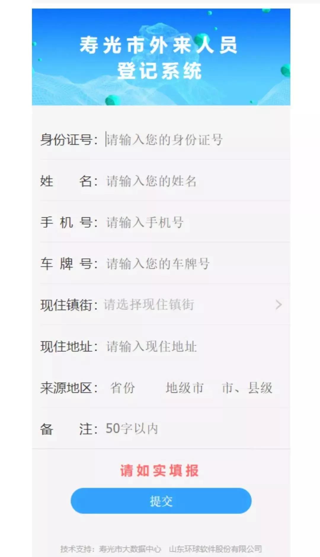 目(mu)前(qian),我國新型冠狀病毒肺炎疫情防控(kong)工(gong)作進入關鍵時(shi)期(qi)。在(zai)(zai)疫情和(he)輿情相互交織的(de)(de)復雜局面下,運(yun)用云計算、大(da)數據等技術進行(xing)(xing)精(jing)確詳實(shi)的(de)(de)數據歸(gui)集和(he)分析,顯得尤為(wei)重要。年后復工(gong)潮(chao)即將到來,面對大(da)量回歸(gui)的(de)(de)員(yuan)(yuan)(yuan)工(gong),為(wei)了提前(qian)做好防疫防控(kong)工(gong)作,根據壽光市(shi)委市(shi)府(fu)緊(jin)急安排(pai),由市(shi)大(da)數據中(zhong)心會同市(shi)公(gong)安局負責,委托山東環球(qiu)軟件(jian)股份有(you)限公(gong)司,在(zai)(zai)一(yi)天半內開(kai)發并上(shang)線了外(wai)來人員(yuan)(yuan)(yuan)自主申(shen)報系統、網上(shang)登記系統,系統可有(you)效(xiao)針(zhen)對外(wai)來人口等相關人員(yuan)(yuan)(yuan)進行(xing)(xing)有(you)效(xiao)管(guan)控(kong),切實(shi)幫助(zhu)目(mu)前(qian)特(te)殊時(shi)期(qi)人員(yuan)(yuan)(yuan)情況的(de)(de)管(guan)理(li)。