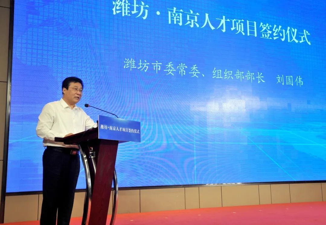 6月(yue)15日(ri),由中共濰坊(fang)市委組織部(bu)主辦的(de)“濰坊(fang)·南京(jing)人才(cai)項目簽約儀(yi)式”在南京(jing)舉行,濰坊(fang)市委常委、組織部(bu)部(bu)長(chang)(chang)(chang)劉國偉等(deng)市直部(bu)門和(he)縣市區主要(yao)領導、南京(jing)工業(ye)大學(xue)校長(chang)(chang)(chang)喬旭等(deng)南京(jing)高(gao)等(deng)院校領導出席(xi)簽約儀(yi)式,我司董(dong)事長(chang)(chang)(chang)劉德永參加(jia)活動。