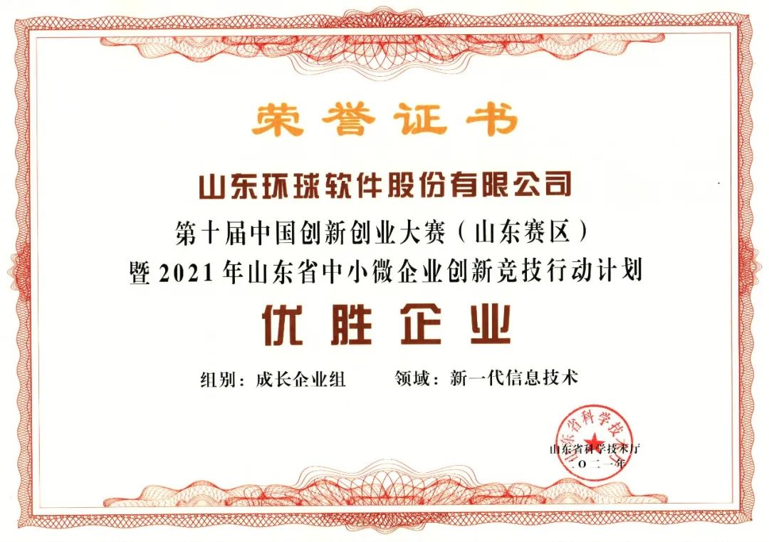 近日,省(sheng)科技廳公(gong)布(bu)了(le)第十屆中(zhong)國創(chuang)新(xin)創(chuang)業(ye)(ye)大賽(sai)山(shan)東(dong)賽(sai)區暨(ji)2021年“建行創(chuang)業(ye)(ye)者港(gang)灣”山(shan)東(dong)省(sheng)中(zhong)小微企業(ye)(ye)創(chuang)新(xin)競技行動計(ji)劃(hua)優(you)勝(sheng)企業(ye)(ye)、團隊名(ming)單。經過網上初選、現場(chang)晉級等環(huan)(huan)節(jie)的(de)激烈角逐,山(shan)東(dong)環(huan)(huan)球軟(ruan)件股份(fen)有限公(gong)司(si)從全省(sheng)新(xin)一代信息技術企業(ye)(ye)中(zhong)脫穎而(er)出,榮膺優(you)勝(sheng)企業(ye)(ye)榮譽。這是(shi)公(gong)司(si)繼2019年、2020年后,連續第三年獲此殊榮,充分彰顯了(le)環(huan)(huan)球軟(ruan)件在新(xin)一代信息技術領域的(de)創(chuang)新(xin)實力(li)。
