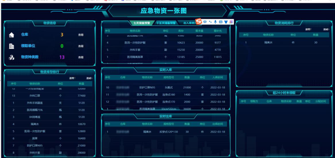 應(ying)急(ji)(ji)防(fang)疫(yi)物資管理(li)系統綜合運用大(da)數據、云(yun)計算、物聯網等(deng)信息技術,主要設置應(ying)急(ji)(ji)物資管理(li)一(yi)(yi)張(zhang)圖、物資管理(li)、應(ying)急(ji)(ji)隊伍管理(li)、醫療機構設置、科室人(ren)員維護等(deng)五大(da)模塊。通(tong)過(guo)(guo)系統,提前將(jiang)全縣7-15天內所需物資線上(shang)(shang)儲備入(ru)庫,并實(shi)時(shi)(shi)預警提示;通(tong)過(guo)(guo)物資管理(li)可實(shi)現(xian)(xian)線上(shang)(shang)物資出入(ru)庫、物資調撥、物資盤點(dian)等(deng),物資需求不用再打(da)申(shen)請,直接(jie)通(tong)過(guo)(guo)管理(li)員下(xia)發,領取(qu)人(ren)去(qu)倉庫核驗領取(qu)即可;通(tong)過(guo)(guo)應(ying)急(ji)(ji)隊伍管理(li)和(he)醫療機構設置,實(shi)現(xian)(xian)應(ying)急(ji)(ji)人(ren)員的(de)管控(kong)和(he)任務分配(pei),以及醫療機構與各個防(fang)疫(yi)點(dian)、隔離點(dian)在(zai)物資、信息等(deng)方面的(de)互聯互通(tong),做到物資供給管理(li)隨時(shi)(shi)響(xiang)應(ying),保障一(yi)(yi)線疫(yi)情物資供給。