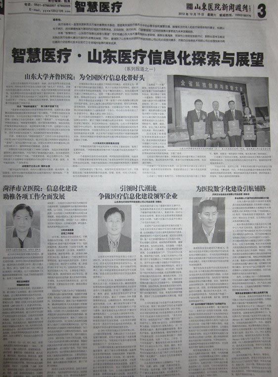 近(jin)日,山東醫院新聞周刊刊登了公司(si)以“引領時代潮流 爭做醫療信息化建(jian)設領軍企(qi)業(ye)”為主題的報(bao)道。