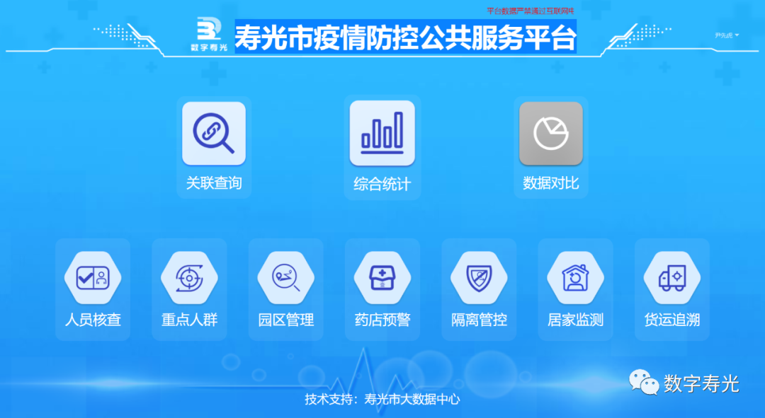 一是急用為先,逐步完善,搭建疫情防控公共平臺。以“系統整合、數據共享、充分利舊、簡便實用”為基本原則,以“底層數據打通、中間業務關聯、上層入口統一”為基礎框架,打通系統間的數據,建成一體多能的疫情防控公共服務平臺。平臺對原有在用的(de)貨運追溯、人(ren)員流調、隔離(li)點(dian)管理、人(ren)員排查、藥(yao)店(dian)預(yu)警、居家健康監(jian)測等6個(ge)(ge)疫(yi)(yi)情(qing)(qing)防(fang)控(kong)系統進行優(you)化整合(he)(he),新增關(guan)聯(lian)查詢、綜合(he)(he)統計、數(shu)(shu)據(ju)比對、重點(dian)人(ren)群、流動人(ren)口、物流園管理等6個(ge)(ge)功能(neng)模塊,全面整合(he)(he)匯聚壽光市(shi)相關(guan)單位(wei)疫(yi)(yi)情(qing)(qing)防(fang)控(kong)業務數(shu)(shu)據(ju),申請對接上級返還數(shu)(shu)據(ju),搭建起統一的(de)疫(yi)(yi)情(qing)(qing)防(fang)控(kong)數(shu)(shu)據(ju)庫,有效支(zhi)撐(cheng)各工(gong)作專(zhuan)班、市(shi)直部門(men)單位(wei)和鎮街(jie)的(de)疫(yi)(yi)情(qing)(qing)防(fang)控(kong)數(shu)(shu)據(ju)需求,實現疫(yi)(yi)情(qing)(qing)防(fang)控(kong)工(gong)作的(de)全流程閉(bi)環管理。