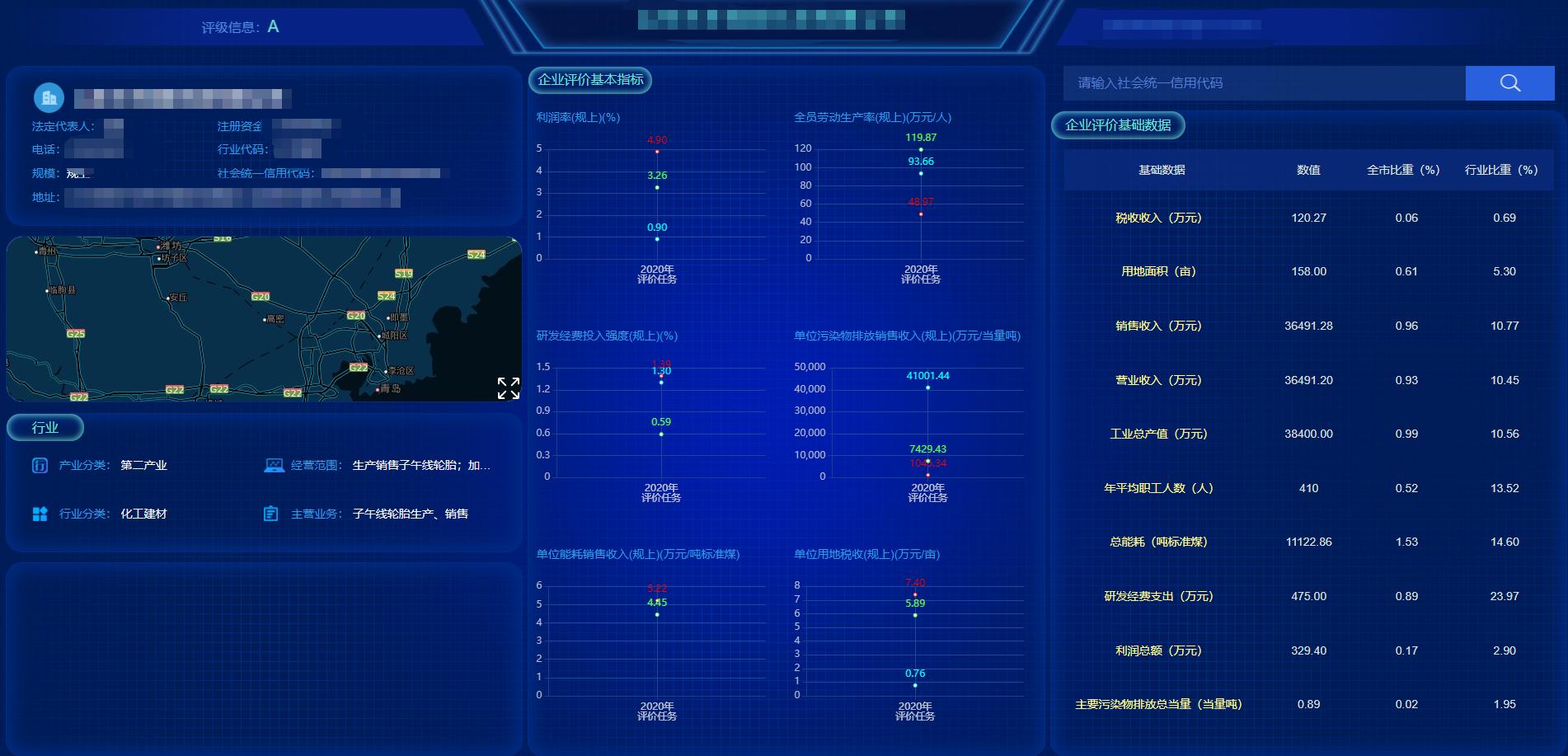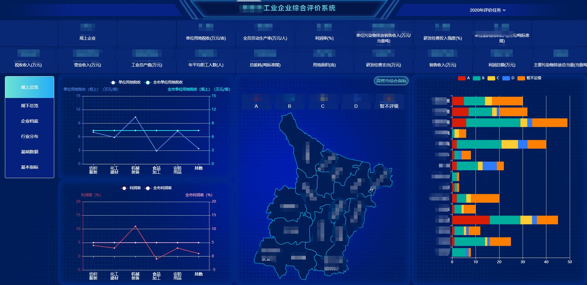 壽光市(shi)(shi)工(gong)業(ye)(ye)企(qi)(qi)(qi)(qi)(qi)(qi)(qi)(qi)業(ye)(ye)綜(zong)(zong)合(he)(he)(he)評(ping)價(jia)(jia)系(xi)(xi)統(tong)(tong)(tong)作為(wei)壽光市(shi)(shi)智慧城(cheng)市(shi)(shi)規(gui)(gui)(gui)劃建(jian)(jian)設(she)的(de)重(zhong)要(yao)組(zu)成(cheng)部分(fen)(fen),也是壽光市(shi)(shi)數(shu)字政府建(jian)(jian)設(she)中經濟運行(xing)(xing)監測(ce)平臺的(de)重(zhong)要(yao)模塊,按照(zhao)上(shang)(shang)級(ji)資源整合(he)(he)(he)、綜(zong)(zong)合(he)(he)(he)評(ping)價(jia)(jia)、全面分(fen)(fen)析、分(fen)(fen)類(lei)施策的(de)要(yao)求,主要(yao)建(jian)(jian)設(she)企(qi)(qi)(qi)(qi)(qi)(qi)(qi)(qi)業(ye)(ye)、鎮街、部門分(fen)(fen)級(ji)數(shu)據(ju)(ju)上(shang)(shang)報系(xi)(xi)統(tong)(tong)(tong)、一(yi)企(qi)(qi)(qi)(qi)(qi)(qi)(qi)(qi)一(yi)檔企(qi)(qi)(qi)(qi)(qi)(qi)(qi)(qi)業(ye)(ye)檔案(an)(an)系(xi)(xi)統(tong)(tong)(tong)、基(ji)(ji)礎數(shu)據(ju)(ju)指(zhi)標(biao)(biao)自(zi)定義系(xi)(xi)統(tong)(tong)(tong)、評(ping)價(jia)(jia)指(zhi)標(biao)(biao)自(zi)動計算系(xi)(xi)統(tong)(tong)(tong)、畝產效益評(ping)價(jia)(jia)系(xi)(xi)統(tong)(tong)(tong)、異議反饋處(chu)置系(xi)(xi)統(tong)(tong)(tong)、歷史檔案(an)(an)系(xi)(xi)統(tong)(tong)(tong)、評(ping)價(jia)(jia)分(fen)(fen)級(ji)研判系(xi)(xi)統(tong)(tong)(tong)、基(ji)(ji)于GIS的(de)數(shu)據(ju)(ju)多維分(fen)(fen)析系(xi)(xi)統(tong)(tong)(tong)九個方面的(de)內(nei)容,形(xing)成(cheng)企(qi)(qi)(qi)(qi)(qi)(qi)(qi)(qi)業(ye)(ye)全程參與的(de)數(shu)據(ju)(ju)歸集體(ti)系(xi)(xi)、年度評(ping)價(jia)(jia)指(zhi)標(biao)(biao)自(zi)適(shi)應體(ti)系(xi)(xi)兩(liang)個績效綜(zong)(zong)合(he)(he)(he)評(ping)價(jia)(jia)運行(xing)(xing)體(ti)系(xi)(xi)。根據(ju)(ju)企(qi)(qi)(qi)(qi)(qi)(qi)(qi)(qi)業(ye)(ye)綜(zong)(zong)合(he)(he)(he)績效評(ping)價(jia)(jia)最終得分(fen)(fen)進(jin)行(xing)(xing)排序,按規(gui)(gui)(gui)模以上(shang)(shang)工(gong)業(ye)(ye)企(qi)(qi)(qi)(qi)(qi)(qi)(qi)(qi)業(ye)(ye)和規(gui)(gui)(gui)模以下(xia)(xia)工(gong)業(ye)(ye)企(qi)(qi)(qi)(qi)(qi)(qi)(qi)(qi)業(ye)(ye)分(fen)(fen)行(xing)(xing)業(ye)(ye)進(jin)行(xing)(xing)排序,確定工(gong)業(ye)(ye)企(qi)(qi)(qi)(qi)(qi)(qi)(qi)(qi)業(ye)(ye)綜(zong)(zong)合(he)(he)(he)績效評(ping)價(jia)(jia)結(jie)(jie)果。根據(ju)(ju)企(qi)(qi)(qi)(qi)(qi)(qi)(qi)(qi)業(ye)(ye) A、B、C、D 分(fen)(fen)類(lei)結(jie)(jie)果,推(tui)行(xing)(xing)以差(cha)別化(hua)(hua)政策為(wei)核心、多元(yuan)化(hua)(hua)綜(zong)(zong)合(he)(he)(he)措施為(wei)輔助的(de)結(jie)(jie)果運用體(ti)系(xi)(xi)。本系(xi)(xi)統(tong)(tong)(tong)在2020年對全市(shi)(shi)1727家(jia)(jia)(jia)企(qi)(qi)(qi)(qi)(qi)(qi)(qi)(qi)業(ye)(ye)進(jin)行(xing)(xing)評(ping)價(jia)(jia),根據(ju)(ju)本市(shi)(shi)評(ping)分(fen)(fen)標(biao)(biao)準,對企(qi)(qi)(qi)(qi)(qi)(qi)(qi)(qi)業(ye)(ye)進(jin)行(xing)(xing)綜(zong)(zong)合(he)(he)(he)分(fen)(fen)析打分(fen)(fen),評(ping)價(jia)(jia)出55家(jia)(jia)(jia)A類(lei)規(gui)(gui)(gui)上(shang)(shang)企(qi)(qi)(qi)(qi)(qi)(qi)(qi)(qi)業(ye)(ye)、185 家(jia)(jia)(jia)B類(lei)規(gui)(gui)(gui)上(shang)(shang)企(qi)(qi)(qi)(qi)(qi)(qi)(qi)(qi)業(ye)(ye)、32家(jia)(jia)(jia)C類(lei)規(gui)(gui)(gui)上(shang)(shang)企(qi)(qi)(qi)(qi)(qi)(qi)(qi)(qi)業(ye)(ye)、6家(jia)(jia)(jia)D類(lei)規(gui)(gui)(gui)上(shang)(shang)企(qi)(qi)(qi)(qi)(qi)(qi)(qi)(qi)業(ye)(ye)、84家(jia)(jia)(jia)暫不定級(ji)規(gui)(gui)(gui)上(shang)(shang)企(qi)(qi)(qi)(qi)(qi)(qi)(qi)(qi)業(ye)(ye)和24家(jia)(jia)(jia)A類(lei)規(gui)(gui)(gui)下(xia)(xia)企(qi)(qi)(qi)(qi)(qi)(qi)(qi)(qi)業(ye)(ye)、757家(jia)(jia)(jia)B類(lei)規(gui)(gui)(gui)下(xia)(xia)企(qi)(qi)(qi)(qi)(qi)(qi)(qi)(qi)業(ye)(ye)、276家(jia)(jia)(jia)C類(lei)規(gui)(gui)(gui)下(xia)(xia)企(qi)(qi)(qi)(qi)(qi)(qi)(qi)(qi)業(ye)(ye)、74 家(jia)(jia)(jia)D類(lei)規(gui)(gui)(gui)下(xia)(xia)企(qi)(qi)(qi)(qi)(qi)(qi)(qi)(qi)業(ye)(ye)、72家(jia)(jia)(jia)暫不定級(ji)規(gui)(gui)(gui)下(xia)(xia)企(qi)(qi)(qi)(qi)(qi)(qi)(qi)(qi)業(ye)(ye)。每個企(qi)(qi)(qi)(qi)(qi)(qi)(qi)(qi)業(ye)(ye)根據(ju)(ju)評(ping)價(jia)(jia)數(shu)據(ju)(ju)、評(ping)價(jia)(jia)指(zhi)標(biao)(biao)并結(jie)(jie)合(he)(he)(he)各部門提供的(de)數(shu)據(ju)(ju),形(xing)成(cheng)企(qi)(qi)(qi)(qi)(qi)(qi)(qi)(qi)業(ye)(ye)檔案(an)(an),記錄企(qi)(qi)(qi)(qi)(qi)(qi)(qi)(qi)業(ye)(ye)基(ji)(ji)本信息(xi)、歷次評(ping)價(jia)(jia)數(shu)據(ju)(ju),形(xing)成(cheng)一(yi)企(qi)(qi)(qi)(qi)(qi)(qi)(qi)(qi)一(yi)檔的(de)綜(zong)(zong)合(he)(he)(he)檔案(an)(an)系(xi)(xi)統(tong)(tong)(tong)。
