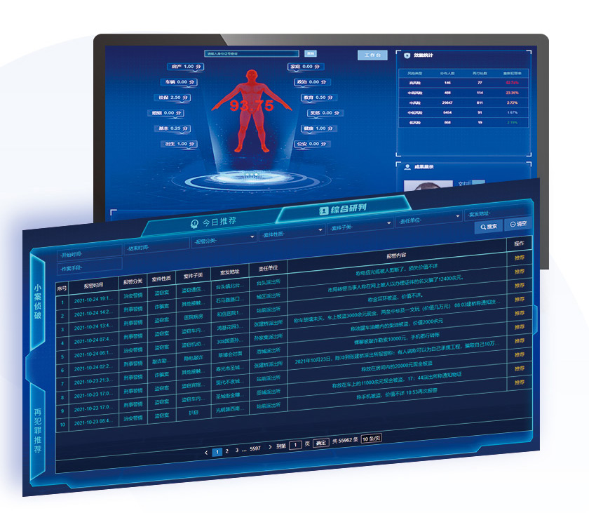該特(te)色助手,通過個(ge)人風險評估(gu)與公安實戰轄(xia)區內(nei)侵財類案(an)件,實現由人到案(an)和由案(an)到人的推薦(jian)