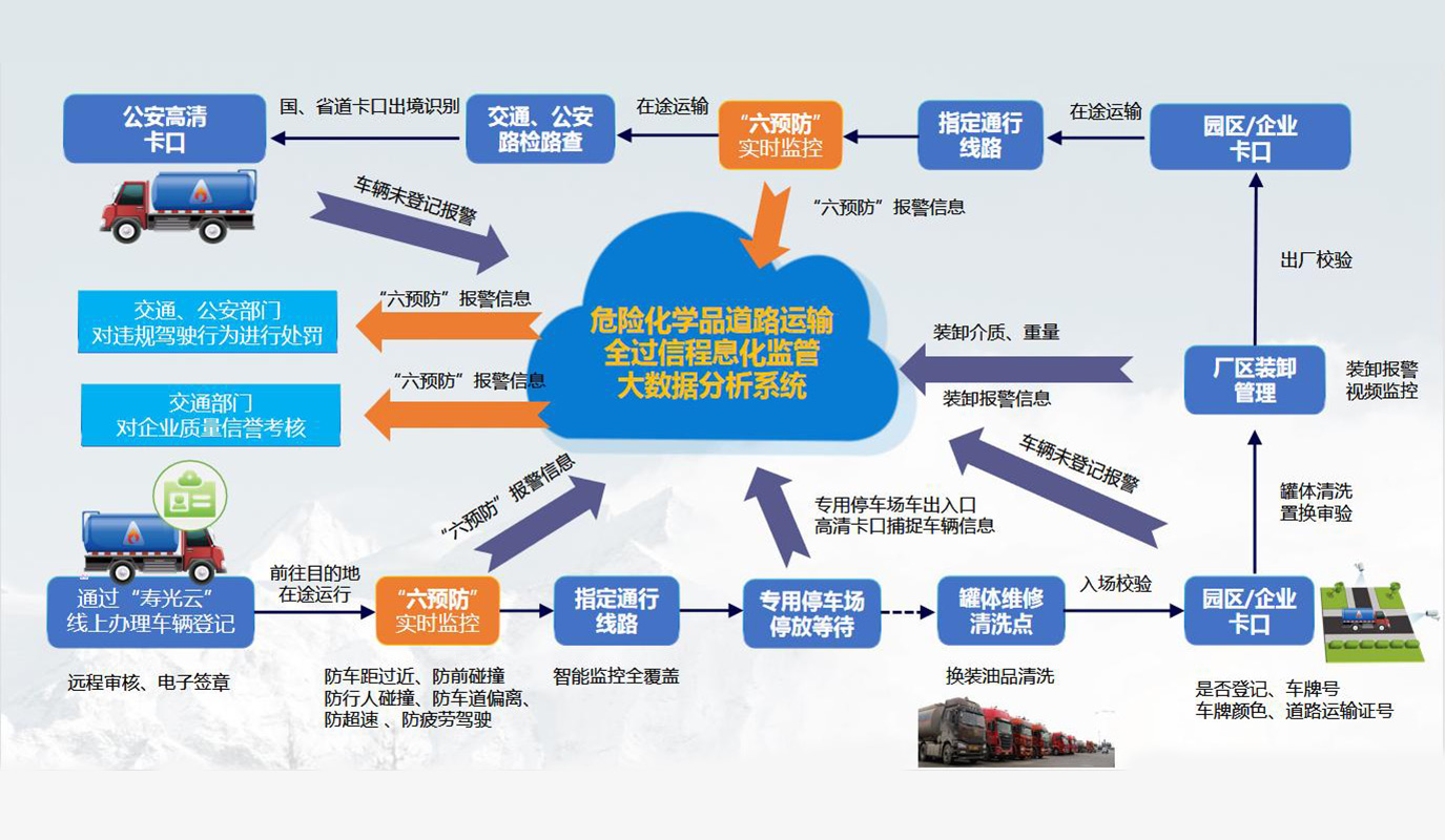 “一系統”即危險化學品道路運輸全過程(cheng)監(jian)管數據(ju)分(fen)析系統。