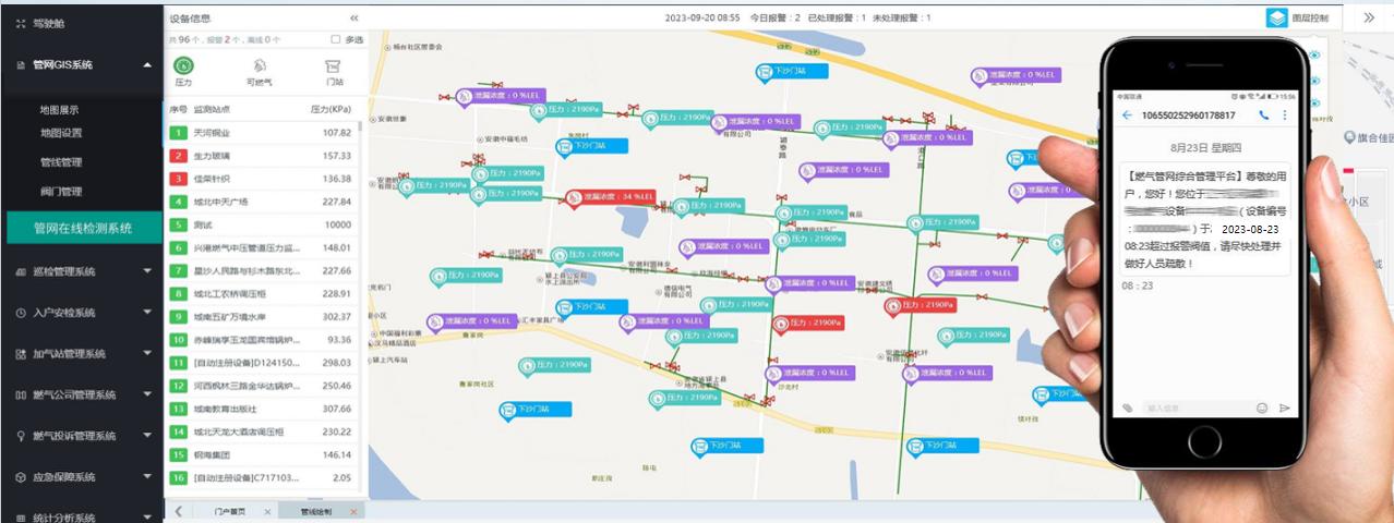 基于互聯網技術,將分(fen)(fen)散在各地的(de)管(guan)(guan)網監(jian)(jian)(jian)測點的(de)數據(管(guan)(guan)網壓(ya)力、氣體泄(xie)露濃(nong)度(du)等)實時傳送到監(jian)(jian)(jian)控中心(xin)(xin),形(xing)成以(yi)監(jian)(jian)(jian)控中心(xin)(xin)為(wei)核心(xin)(xin)輻射整個管(guan)(guan)網的(de)分(fen)(fen)布式(shi)監(jian)(jian)(jian)控網絡,使在線監(jian)(jian)(jian)測不存在盲區。指(zhi)標出現(xian)異常(chang)時自動發(fa)送報警短(duan)信,將安全(quan)隱患撲滅在萌芽狀態(tai)。