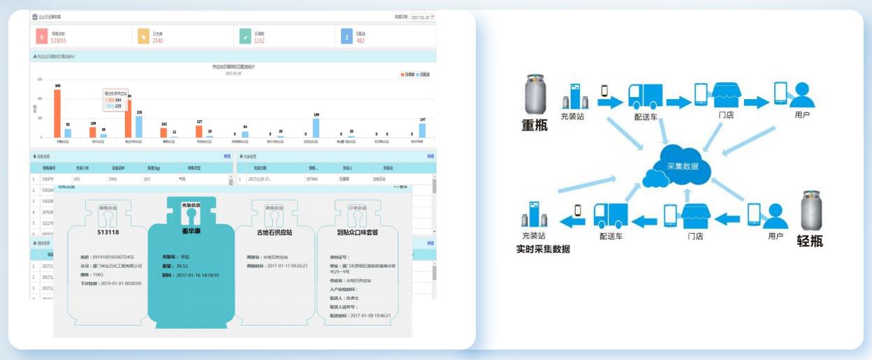 針對液化石油氣監管的(de)(de)痛(tong)點,平(ping)臺為客戶(hu)建立了(le)(le)城市范(fan)圍內鋼瓶(ping)(ping)從生產(chan)制造、充(chong)裝(zhuang)、檢驗、配送的(de)(de)全(quan)流(liu)程監管方案(an)。采用(yong)“一瓶(ping)(ping)一碼”、“一瓶(ping)(ping)一檔(dang)”的(de)(de)方式,實現追蹤(zong)溯(su)源,解(jie)決了(le)(le)氣瓶(ping)(ping)充(chong)裝(zhuang)記錄智(zhi)能化的(de)(de)問題。這(zhe)種全(quan)流(liu)程監管方案(an)不僅提高(gao)了(le)(le)鋼瓶(ping)(ping)管理的(de)(de)效(xiao)率和安全(quan)性,還確保了(le)(le)鋼瓶(ping)(ping)在(zai)全(quan)生命(ming)周期(qi)內的(de)(de)有效(xiao)監控。