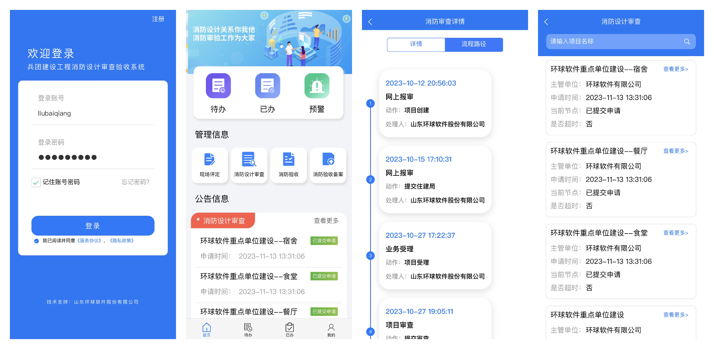 環球軟件消防設計審查驗收監管平臺,實現了對建設工程消防設計審查、消防驗收、消防備案及抽查工作的綜合化管理。該建設工程消防設計審驗平臺包括(kuo)了建設工(gong)程消(xiao)防驗(yan)收在線(xian)申報、建設工(gong)程竣工(gong)驗(yan)收、消(xiao)防備案在線(xian)申報、備案工(gong)程隨機抽取、任務自(zi)(zi)動分配、現場檢查(cha)開展(zhan)、在線(xian)流轉(zhuan)、在線(xian)審批、電子化自(zi)(zi)動歸檔、統計分析以及(ji)自(zi)(zi)動預警(jing)等(deng)功能。