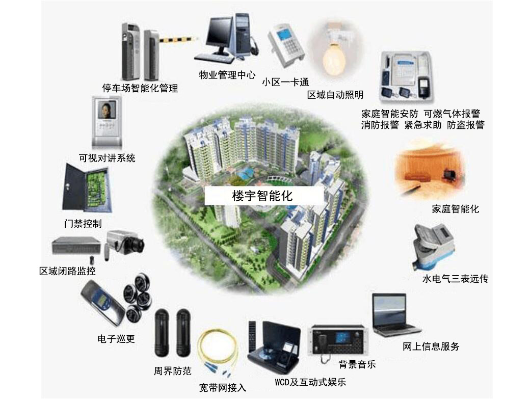 樓(lou)(lou)宇(yu)智能(neng)化(hua)(hua)系(xi)(xi)(xi)統(tong)(tong)(tong)(tong)(tong)(tong)(tong)一(yi)般(ban)包括以下系(xi)(xi)(xi)統(tong)(tong)(tong)(tong)(tong)(tong)(tong):綜合布線系(xi)(xi)(xi)統(tong)(tong)(tong)(tong)(tong)(tong)(tong)、計算機網絡系(xi)(xi)(xi)統(tong)(tong)(tong)(tong)(tong)(tong)(tong)、電話系(xi)(xi)(xi)統(tong)(tong)(tong)(tong)(tong)(tong)(tong)、有線電視(shi)及(ji)衛星電視(shi)系(xi)(xi)(xi)統(tong)(tong)(tong)(tong)(tong)(tong)(tong)、安防監控系(xi)(xi)(xi)統(tong)(tong)(tong)(tong)(tong)(tong)(tong)、一(yi)卡通系(xi)(xi)(xi)統(tong)(tong)(tong)(tong)(tong)(tong)(tong)、廣播告示(shi)系(xi)(xi)(xi)統(tong)(tong)(tong)(tong)(tong)(tong)(tong)、樓(lou)(lou)宇(yu)自控系(xi)(xi)(xi)統(tong)(tong)(tong)(tong)(tong)(tong)(tong)、酒店管(guan)理系(xi)(xi)(xi)統(tong)(tong)(tong)(tong)(tong)(tong)(tong)、物業管(guan)理系(xi)(xi)(xi)統(tong)(tong)(tong)(tong)(tong)(tong)(tong)、智能(neng)樓(lou)(lou)宇(yu)管(guan)理系(xi)(xi)(xi)統(tong)(tong)(tong)(tong)(tong)(tong)(tong)(集控平臺)及(ji)數據中心(xin)機房建設(she)等。樓(lou)(lou)宇(yu)智能(neng)化(hua)(hua)的基本要求是辦公設(she)備自動化(hua)(hua)、智能(neng)化(hua)(hua),通信系(xi)(xi)(xi)統(tong)(tong)(tong)(tong)(tong)(tong)(tong)高(gao)性能(neng)化(hua)(hua),建筑柔性化(hua)(hua),建筑管(guan)理服務自動化(hua)(hua)。
